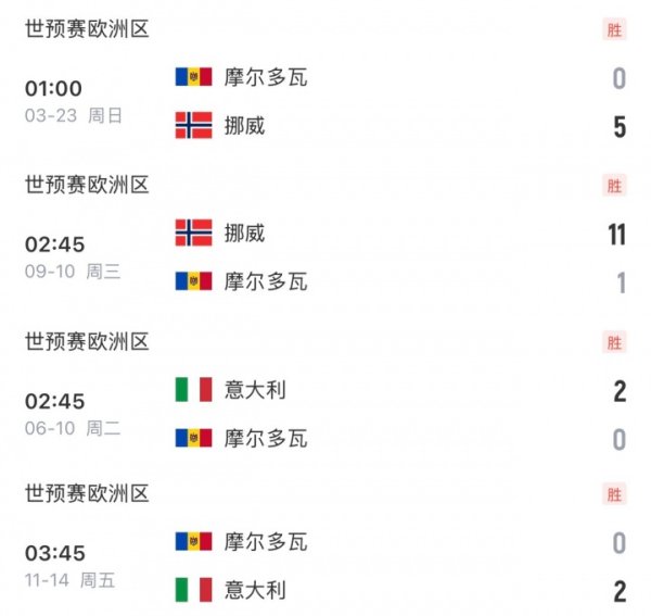 就输在虐菜?挪威2战垫底摩尔多瓦收获15净胜球,而意大利仅取4球