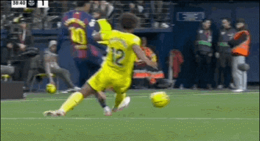 雷纳托-韦加因一次极具危险性的凶狠铲球被直接驱逐 罚下,当时他从背后双脚飞铲亚马尔,这个动作的侵略性极强,极有可能对其造成严重的伤害。