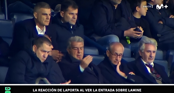 巴萨在客场应战 2-0战胜比利亚雷亚尔。赛事 的第39分钟,雷纳托-韦加背后放铲亚马尔被驱逐 罚下,这一违例 动作令看台上的巴萨主席拉波尔塔非常不满。