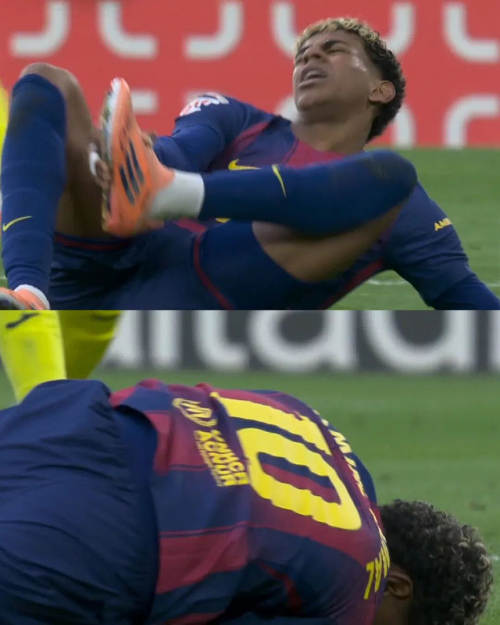巴萨医疗队伍 随即入场对亚马尔展开治疗,而巴萨球员则围拢在裁判 身边,对这一违例 表达强烈不满。
