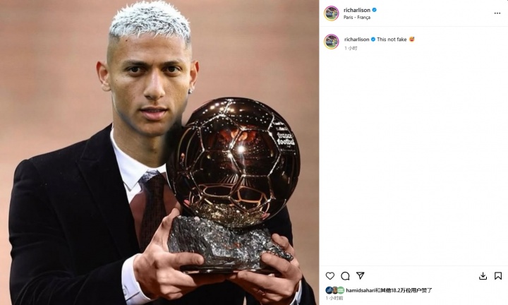 理查利森并未入围今年金球奖候选英超联赛直播在线观看免费,苏超在线直播高清视频无插件他分享自己获奖照调侃:“这不是假的😅。”