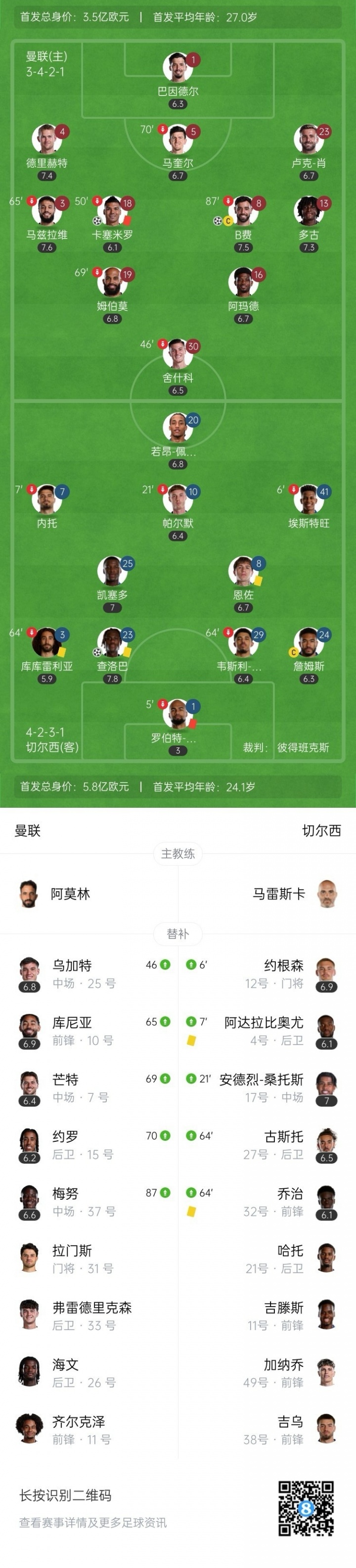 英超第5轮:切尔西1-2曼联。0-0时,桑切斯直红,马雷斯卡换下2前场球员,场上5后场球员+3中场球员+1前场球员,前腰帕尔默21分钟也换下。切尔西没守住,1-2告负。