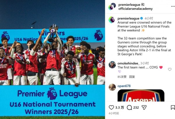 给大哥们打个样!阿森纳U16小组赛0失球,最终赢得全国冠军赛 第一名