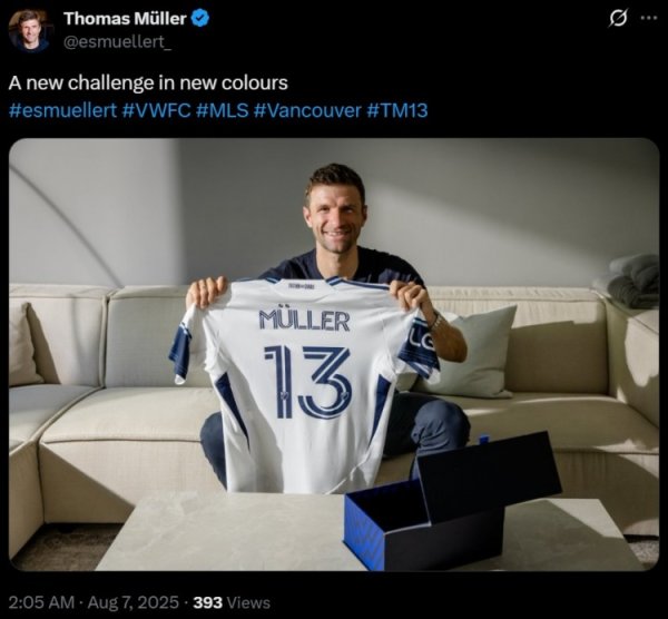 加盟温哥华白浪,穆勒社媒:身披全新颜色运动活动 服 的新应战