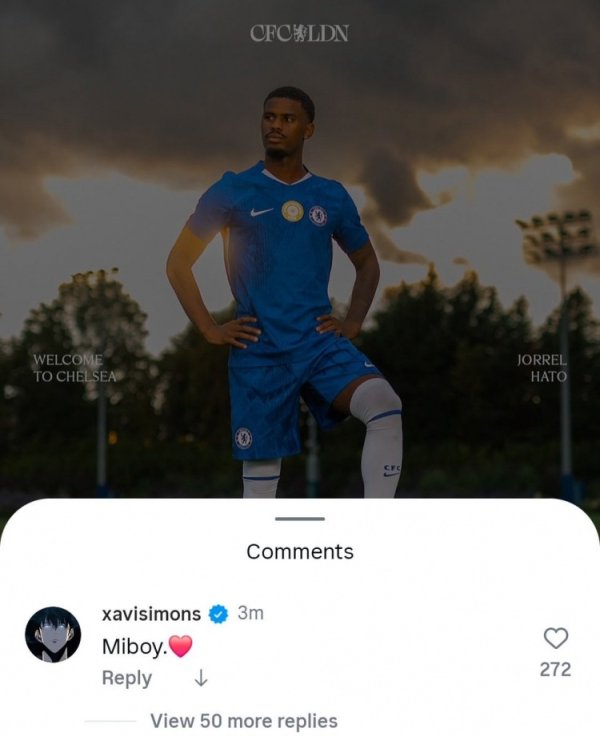 哈托官宣加盟切尔西,哈维-西蒙斯社媒留言:我的兄弟❤️